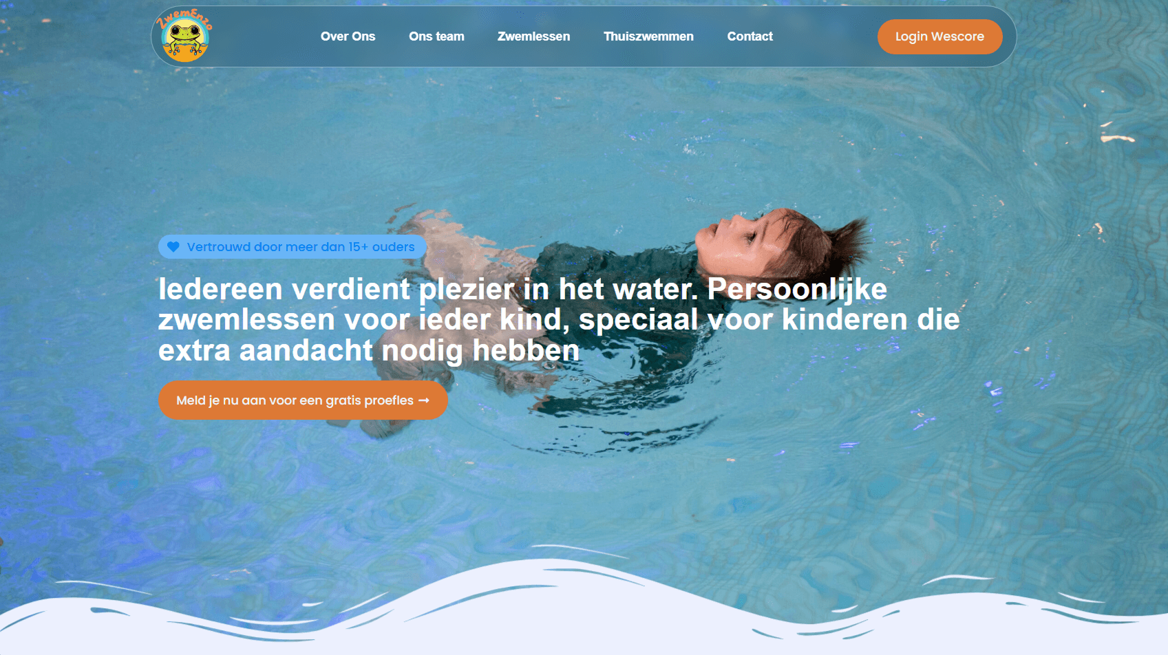 De nieuwe site ademt professionaliteit en warmte, precies zoals Zwemwenzo het voor zich zag. Bezoekers voelen zich meteen welkom, vinden moeiteloos wat ze nodig hebben, en de look past naadloos bij het merk. Het is een website waar het hele team trots op is, en die écht laat zien wat Zwemwenzo te bieden heeft.